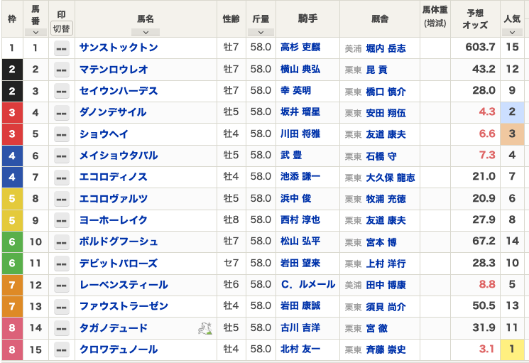 一方、武豊騎手が騎乗するメイショウタバルは4枠6番、ダノンデサイルは3枠4番と比較的好枠を引いており、枠順の有利不利がオッズや馬券戦略にも影響を与えそうだという声も上がっている。「大外嫌われてオッズが動くなら儲けもん」「デサイルが1番人気になりそう」といった馬券目線の投稿も目立つ。