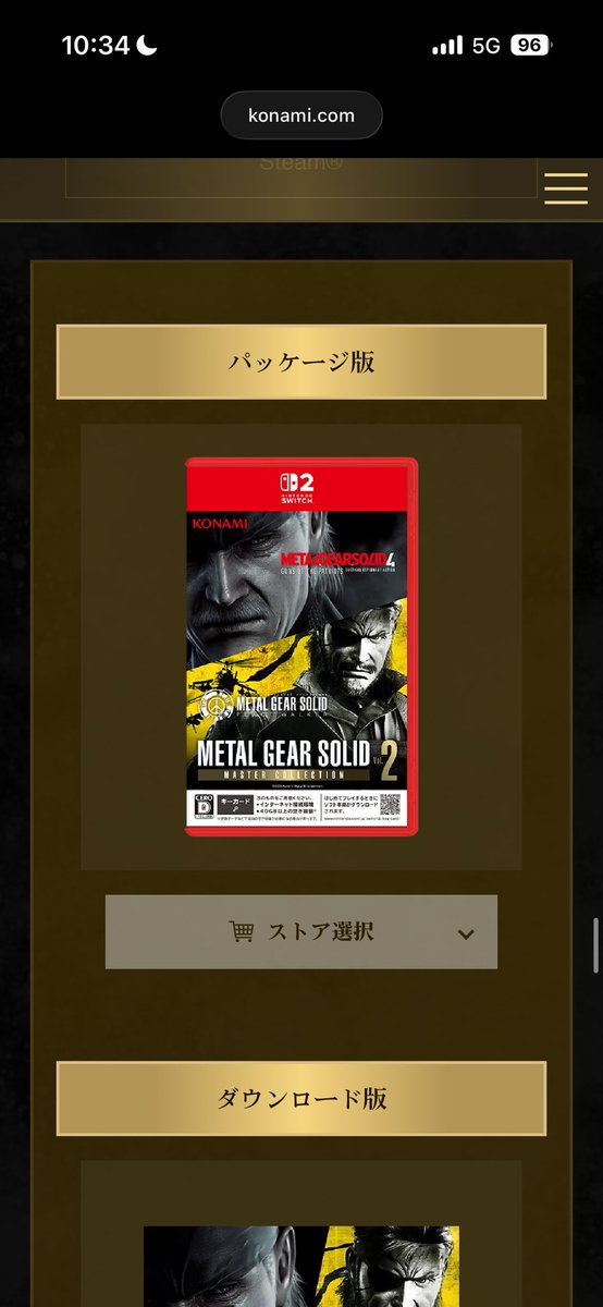 Switch2での発売も決定しており、携帯モードでメタルギアシリーズをプレイできることへの期待も高まっている。Steam版とSwitch版の両方を購入検討する声もあり、実績・トロフィー目的と携帯プレイ目的での使い分けを考えるファンも見られる。Vol.1では『MGS1』『MGS2』『MGS3』が収録されており、今回のVol.2でシリーズの主要作品がほぼ現代プラットフォームで揃うことになる。