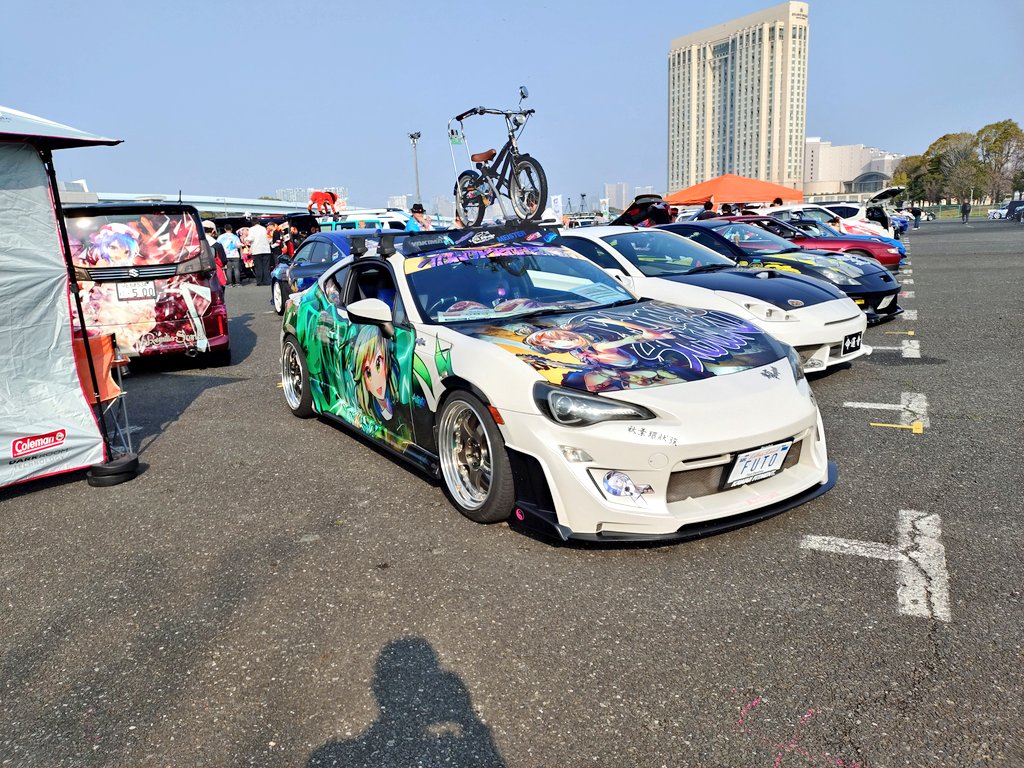 最も注目を集めたのが、東京・お台場の青海NOP区画で開催された「お台場痛車天国2026 SPRING」だ。全国から約1,000台の痛車が集結するこの大規模イベントは、9:30〜16:00の開催で、入場料は当日1,800円・前売1,500円。東方Projectファンの痛車グループが「#痛車天国2026」「#痛車天国2026で会いましょう」のハッシュタグと共に設営完了の写真を投稿し、大きな拡散を生んだ。