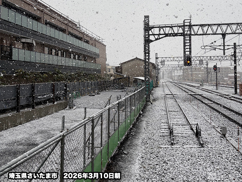 2026年3月10日(火)、上空の強い寒気の影響で東京都内では多摩地方を中心にミゾレや雪が降り、一部では大粒の雪となった。ウェザーニュースによると、東京23区でも西側の地域ほど大粒の雪が降り、一部では積雪の報告も届いた。栃木県宇都宮市では積雪12cmを観測し、大雪警報が発表される事態となった。関東北部では「ドカドカ」と表現されるほどの降雪が報告されている。