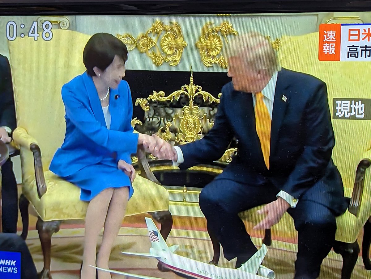 高市首相は会談の冒頭で「世界中の安全保障環境が非常に厳しく、世界経済もかなり厳しい影響を受けつつあるが、世界中に平和と繁栄をもたらせるのはドナルドだけだと思っている。そのために私は諸外国に働きかけてしっかりと応援をしたい。今日私はそれを伝えに来た」と述べた。トランプ大統領をファーストネームで呼ぶ親密さを演出した発言だった。