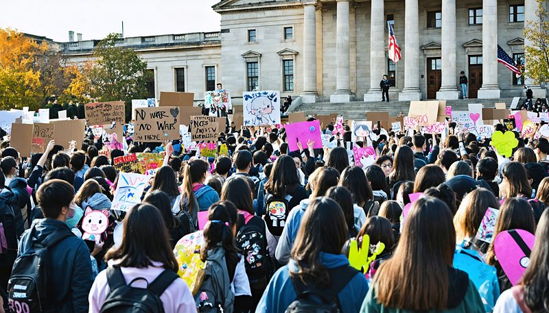また、現地に来られない人向けのオンライン参加の仕組みも話題を広げた要因だ。デモ中の15時に「#戦争をバルス」と一斉にツイートする呼びかけが行われており、「バルス」は映画『天空の城ラピュタ』に登場する「閉じよ」を意味する言葉。オタク文化に根ざしたこのフレーズが、より広い層の共感と参加を促している。