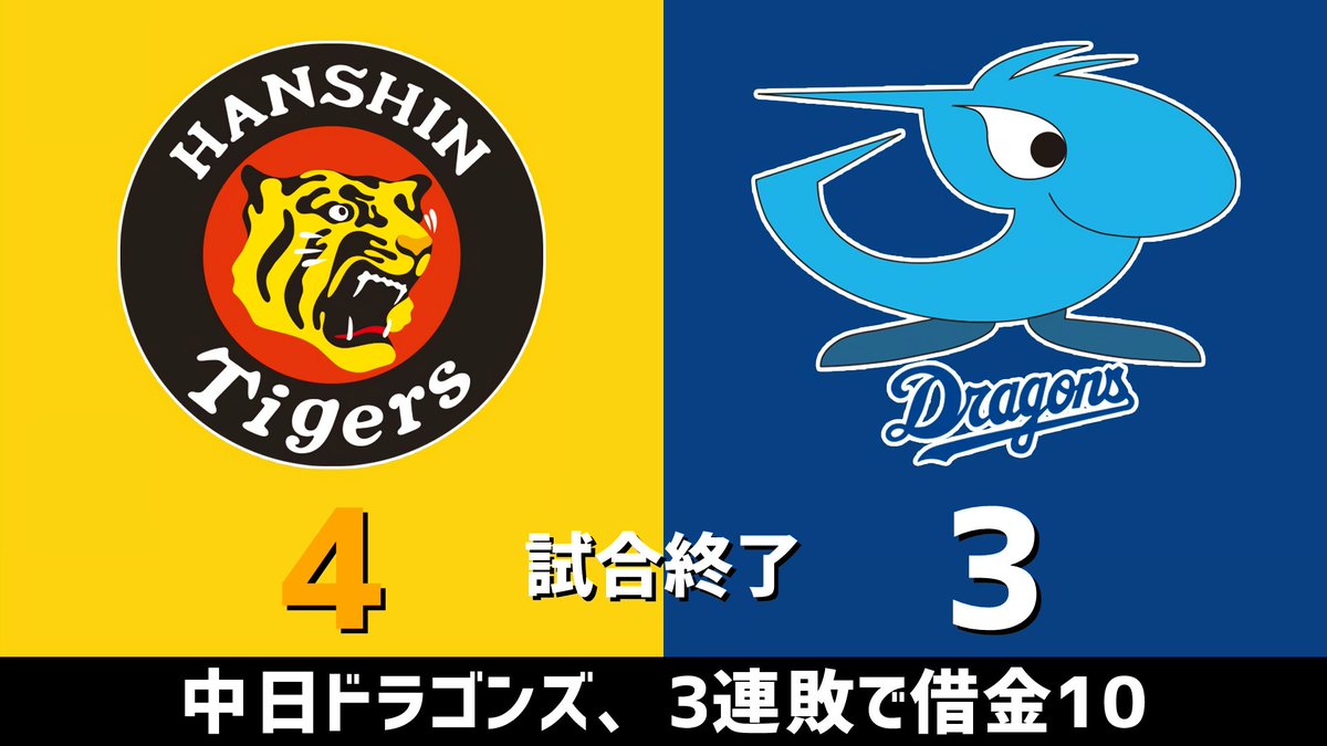 @tanerakeo 連勝で勝越し🐯✨ 対する中日は両リーグ最速の借金10で開幕〜7カード連続負け越し💦 因みに開幕7カード連続負け越しから Aクラスになったチームは無し💦