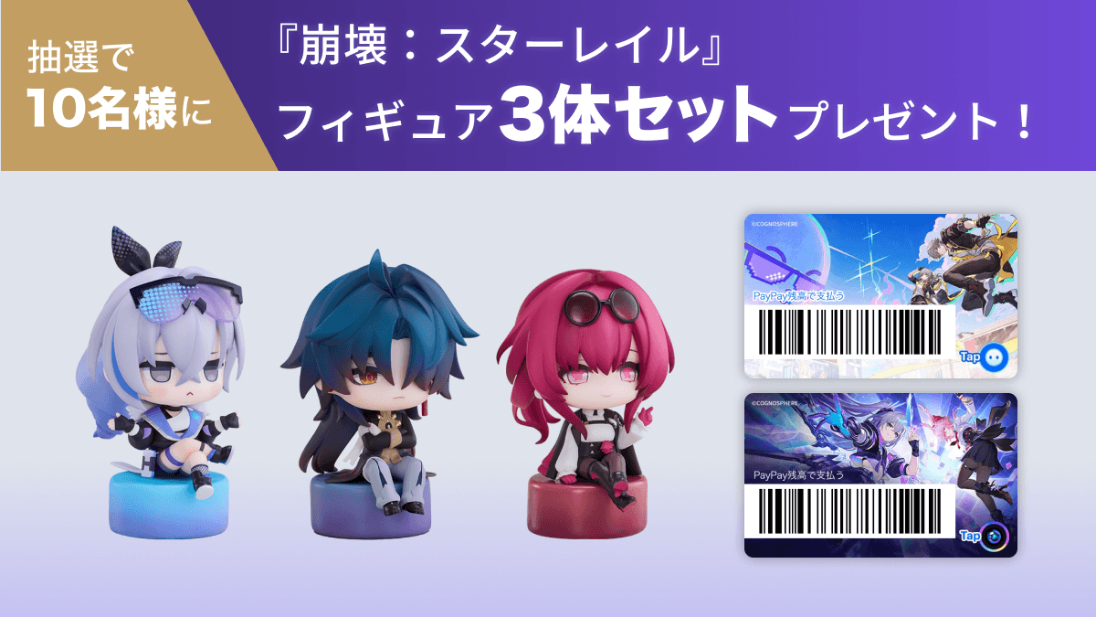 キャンペーンの参加方法は、@houkaistarrailと@PayPayOfficialの2アカウントをフォローし、指定ハッシュタグをつけて公式投稿を引用リポストするというもの。景品は2種類用意されており、@houkaistarrail側の投稿では抽選10名にPayPayポイント1万円分、@PayPayOfficial側の投稿では抽選10名にスターレイルフィギュアセット(1セット3体)がプレゼントされる。実用的なポイントを求める層とコレクターアイテムを求める層の両方に訴求する設計となっている。