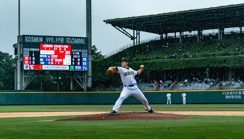 試合は12時30分に開始。当日は雨予報が出ており、試合開催が危ぶまれていたが、大会本部が午前8時過ぎに予定通り準備を進めることを発表。阪神園芸スタッフによるグラウンド整備も行われ、無事に試合が実施された。
