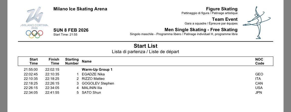 注目の男子フリーでは、マリニンが4回転ジャンプにミスがありコンビネーションにできない場面もあったものの、200.03点を記録。対する佐藤駿は全てのジャンプ要素を成功させる会心の演技で自己ベストを更新する194.86点を叩き出したが、わずかに及ばなかった。この結果、米国が金メダル、日本は銀メダルとなった。