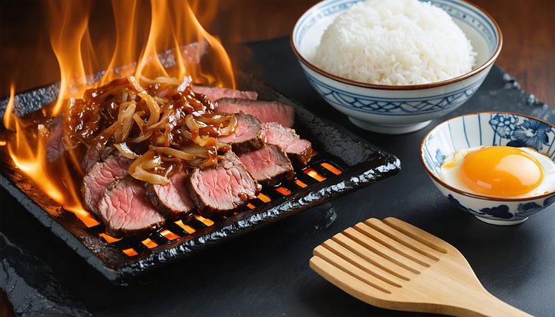 今回の新メニューは、五徳の上の鉄板で焼き上げた牛肉とシャキシャキ食感の玉ねぎを甘辛い特製たれで仕上げた定食。別添の玉子で味変が楽しめるほか、ご飯増量・おかわり無料という定食ならではのサービスも用意されている。過去の販売では年間販売総数100万食を突破した実績を持つ人気メニューの復活とあって、発売前から注目を集めていた。