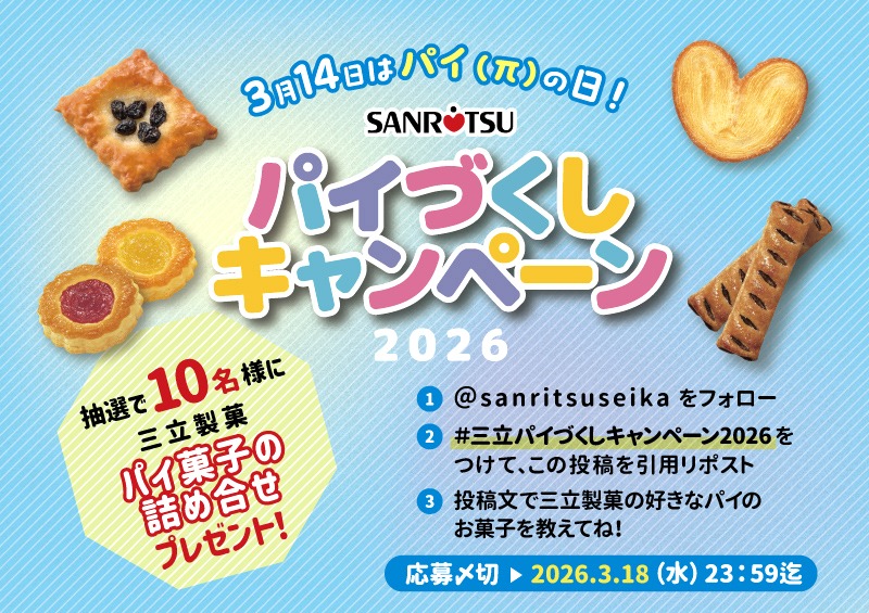 静岡県浜松市に本社を置く三立製菓株式会社が2026年3月4日、公式Xアカウント(@sanritsuseika)でキャンペーン告知を投稿したことをきっかけに、「#三立パイづくしキャンペーン2026」がトレンド入りした。