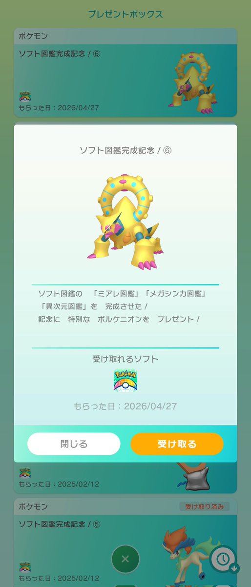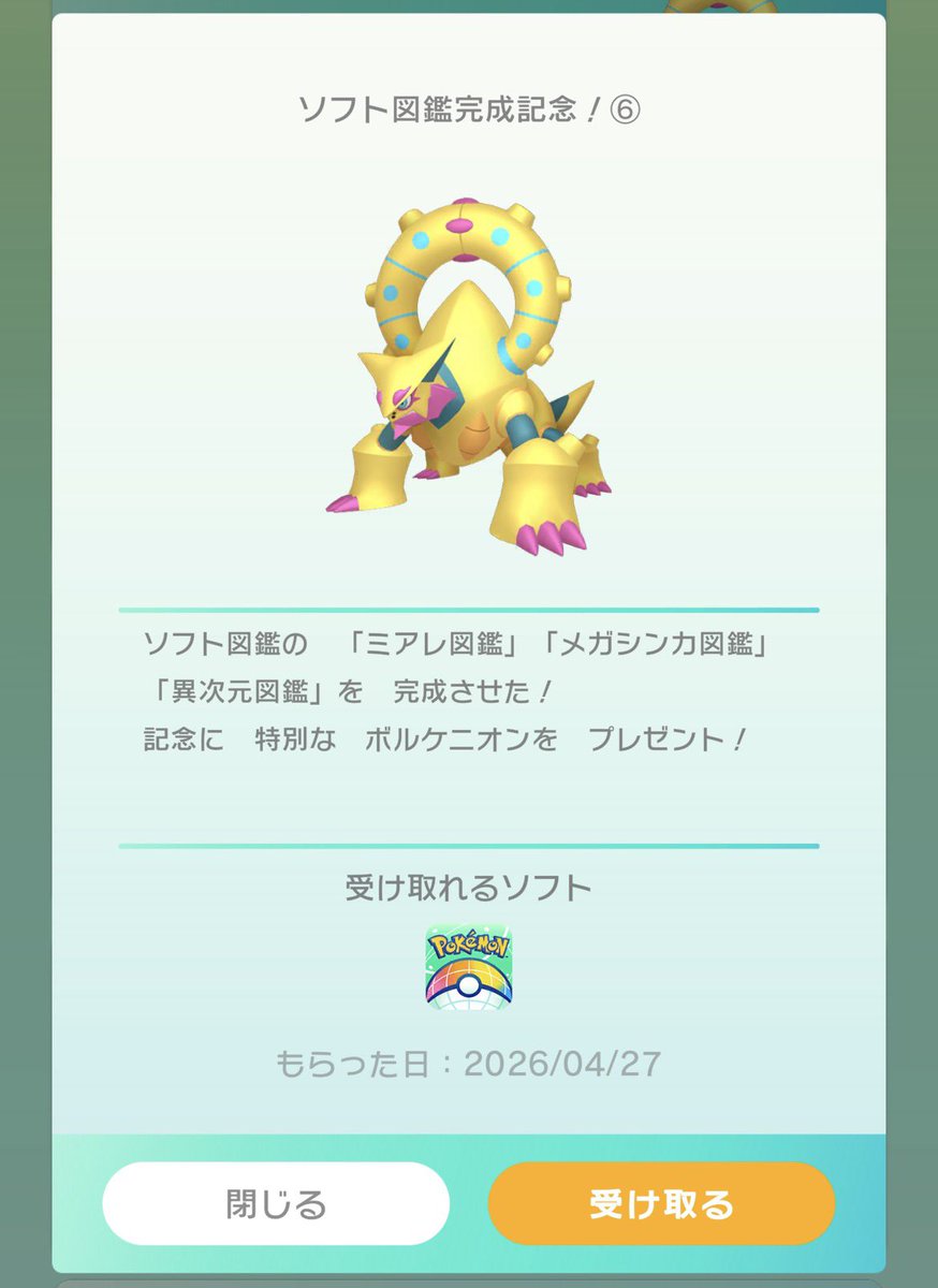 そして2026年4月27日、ポケモンHOMEにてついに色違いボルケニオンが公式に初解禁された。入手条件はミアレ図鑑・異次元図鑑・メガシンカ図鑑の完成という高難度設定となっている。この発表を受け、Xでは元コピペ文の大量引用・改変が相次ぎ、『ワザップジョルノ』『覚悟の準備』『詐欺罪と器物損壊罪』が連鎖的にトレンド入りする事態となった。
