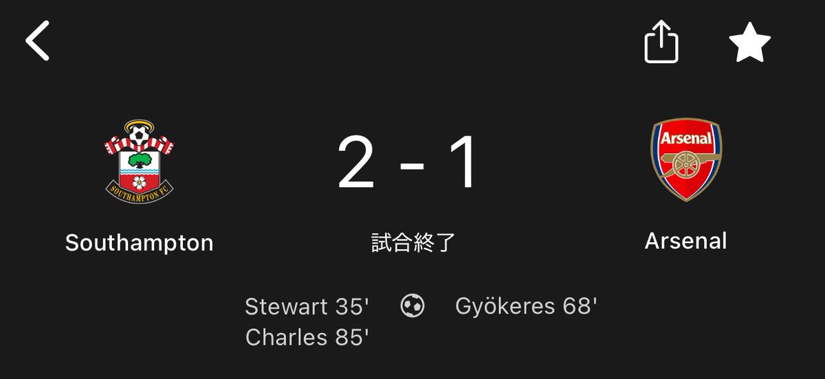 試合は35分にロス・スチュワートのゴールでサウサンプトンが先制。アーセナルは68分にヴィクトル・ギェケレシュのゴールで同点に追いついたが、85分にシェイ・チャールズに勝ち越し点を決められ、そのまま試合終了。格下の2部クラブに逆転負けという結果となった。