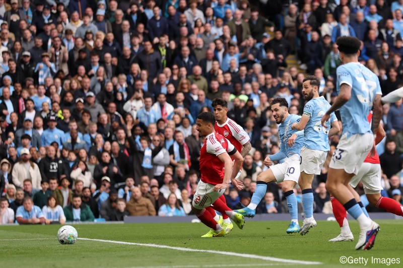 試合はエティハド・スタジアムで行われたプレミアリーグ第33節。マンCのシェルキが美しいドリブルでアーセナルのCBを躱して先制ゴールを決め、さらに65分にはニコ・オライリーのアシストからハーランドが追加点を奪った。アーセナルも1点を返したが及ばず、2-1でマンCが勝利。この結果、首位アーセナルと2位マンCの勝ち点差は暫定3に縮まり、優勝争いはシティ有利との見方が広がっている。