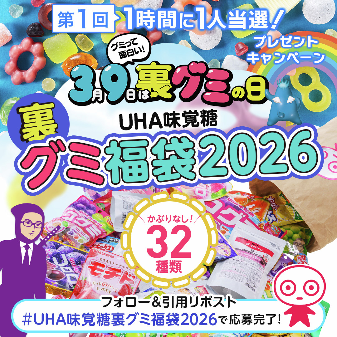 2026年3月9日、UHA味覚糖が独自に設定した記念日『裏グミの日』に合わせて『UHA味覚糖裏グミ福袋2026』の販売を開始し、Xでトレンド入りを果たした。