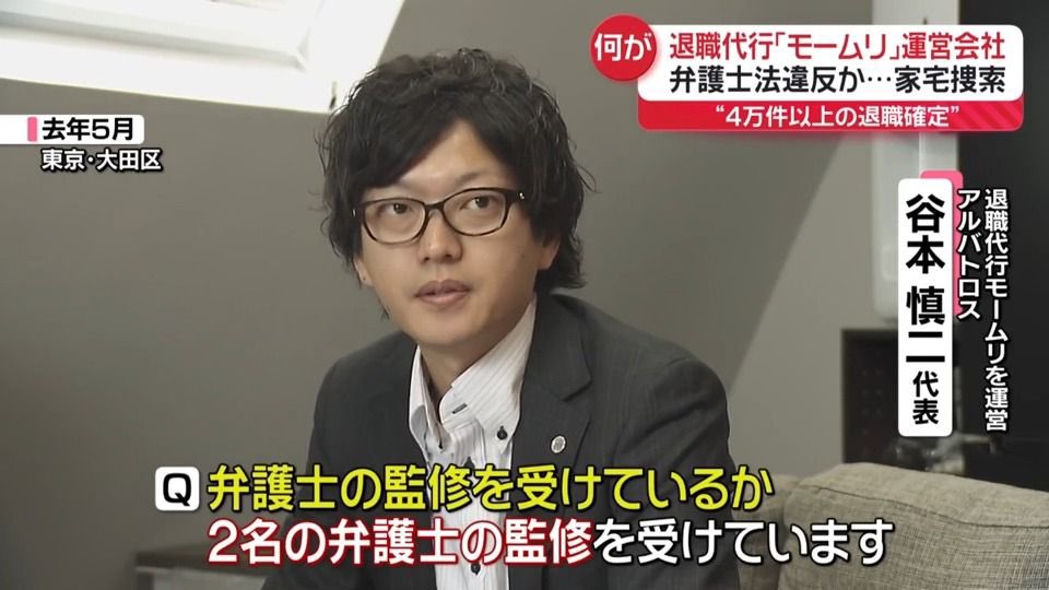 "【独自】退職代行「モームリ」運営会社社長(37)と妻(31)を逮捕 報酬目的で退職交渉に関する仕事を違法に弁護士らに紹介か 弁護士法違反の疑い 警視庁" - TBS NEWS DIG | TBS/JNNのニュースサイト #SmartNews まずは 速報_φ(・_・ https://t.co/9oFmx7rBrD