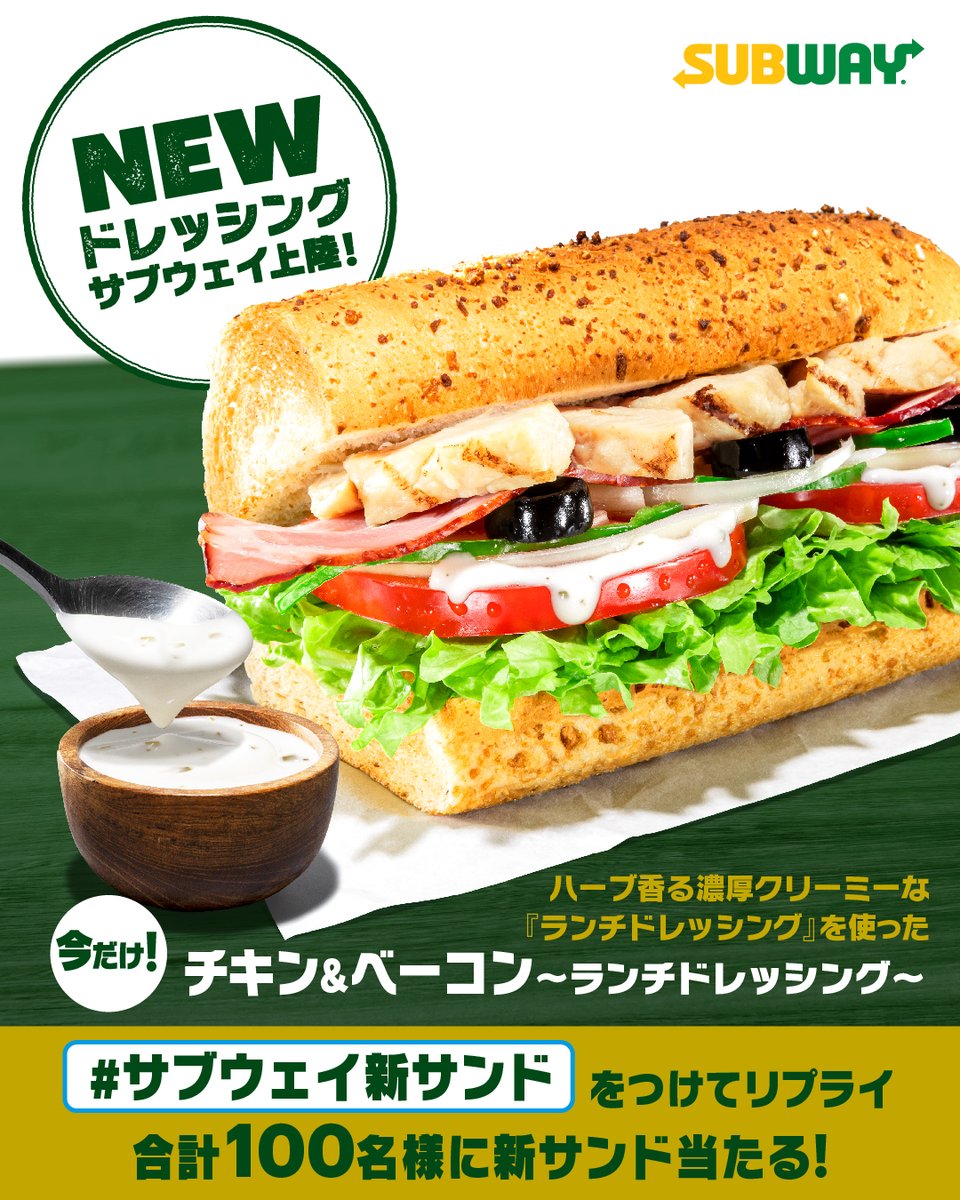 今回の新サンドの主役は「ランチドレッシング」。Ranch(牧場)に由来する白いドレッシングで、ハーブ香る濃厚クリーミーな味わいが特徴だ。「ランチドレッシングというものをサブウェイさんの投稿で初めて知りました」というユーザーも多く、SNSキャンペーンが新フレーバーの認知拡大にも貢献している。