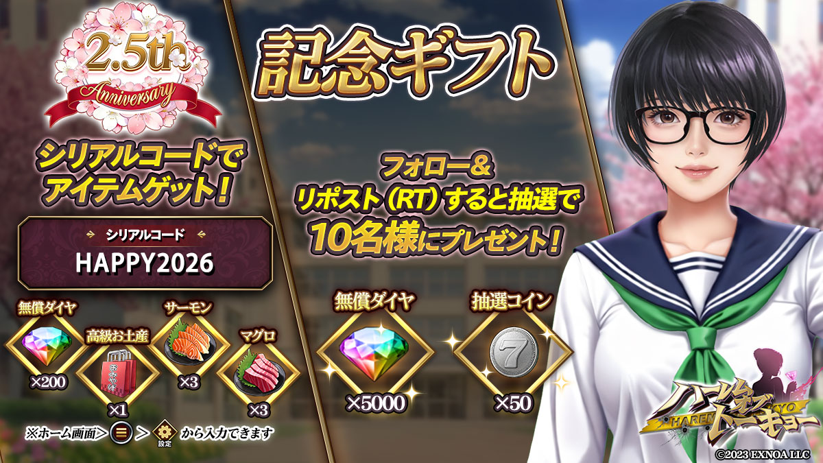 最も締切が迫っているのが、音楽ゲーム「DJMAX RESPECT V」の公式アカウント(@djmax_japan)が実施しているオンゲキパックシリアルコードの抽選キャンペーンだ。@djmax_japanをフォローしてこの投稿をリポストし、専用サイトでX連携して結果を確認するという流れで、合計30名にシリアルコードをプレゼントするというもの。応募期限は本日23:59までとなっており、ファンの間で「今日が最後のチャンス」として急いで拡散されている。