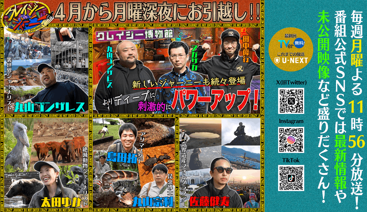 クレイジージャーニー!! 放送枠お引越し!! よかったーー😭😭 終わっちゃうのかと思った😭😭