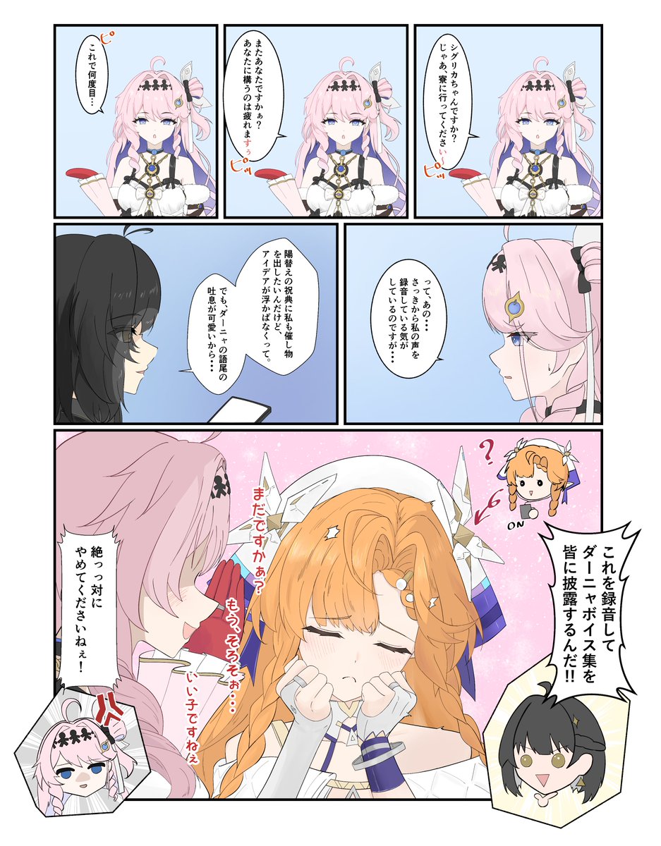 ファンの間で特に注目を集めているのが、ダーニャの謎めいた設定だ。公開された台詞「どうか見ないで、聞かないで、そして忘れてください……知らないほうが幸せなこともありますからねぇ」と、髪飾りが残星組織(Fractsidus)のロゴに酷似しているという点から、ダーニャがスパイである可能性を指摘する考察がSNS上で急速に広まっている。また瞳の色や手袋の色が異なるビジュアルから、特定条件下で形態が変化するキャラクターではないかという推測も飛び交っている。