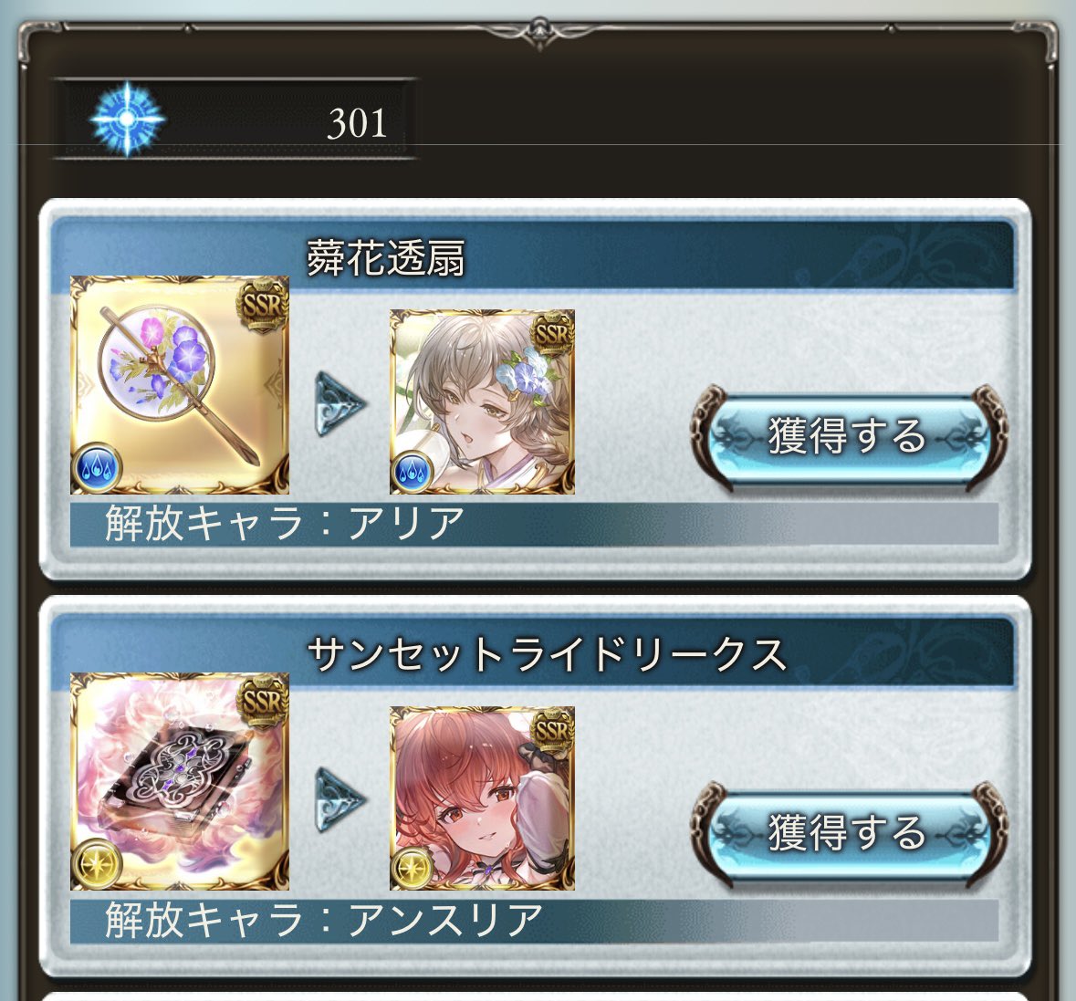 今回のレジェンドフェス後半のPU対象は、水着アンスリア・浴衣アリア(新規2枠)に加え、リミテッド枠「ポセイドン」の計3枠。開催期間は4月3日18:59までとなっている。アンスリアのプロフィールは年齢23歳・身長163cm・種族エルーン・趣味は踊りで、光属性の水着バージョンとして登場した。